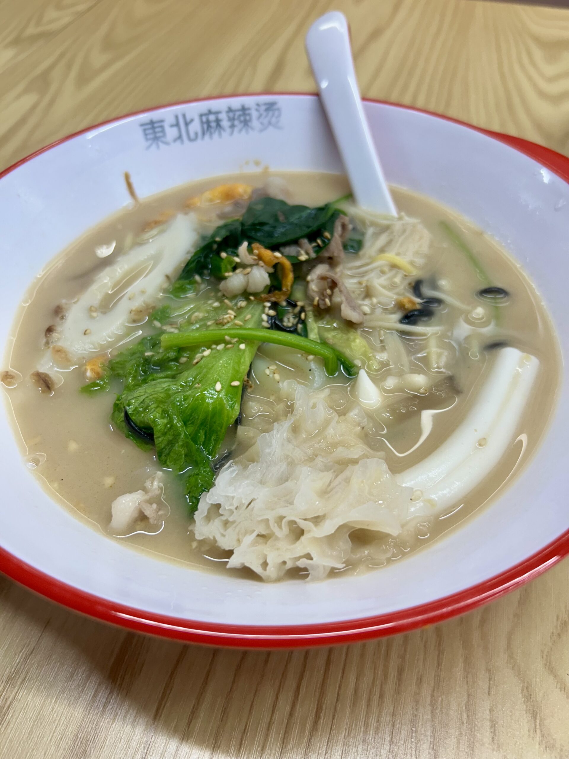 今回は珍しいトムヤムクン風味を食べましたが、牛骨ベースの麻辣湯と