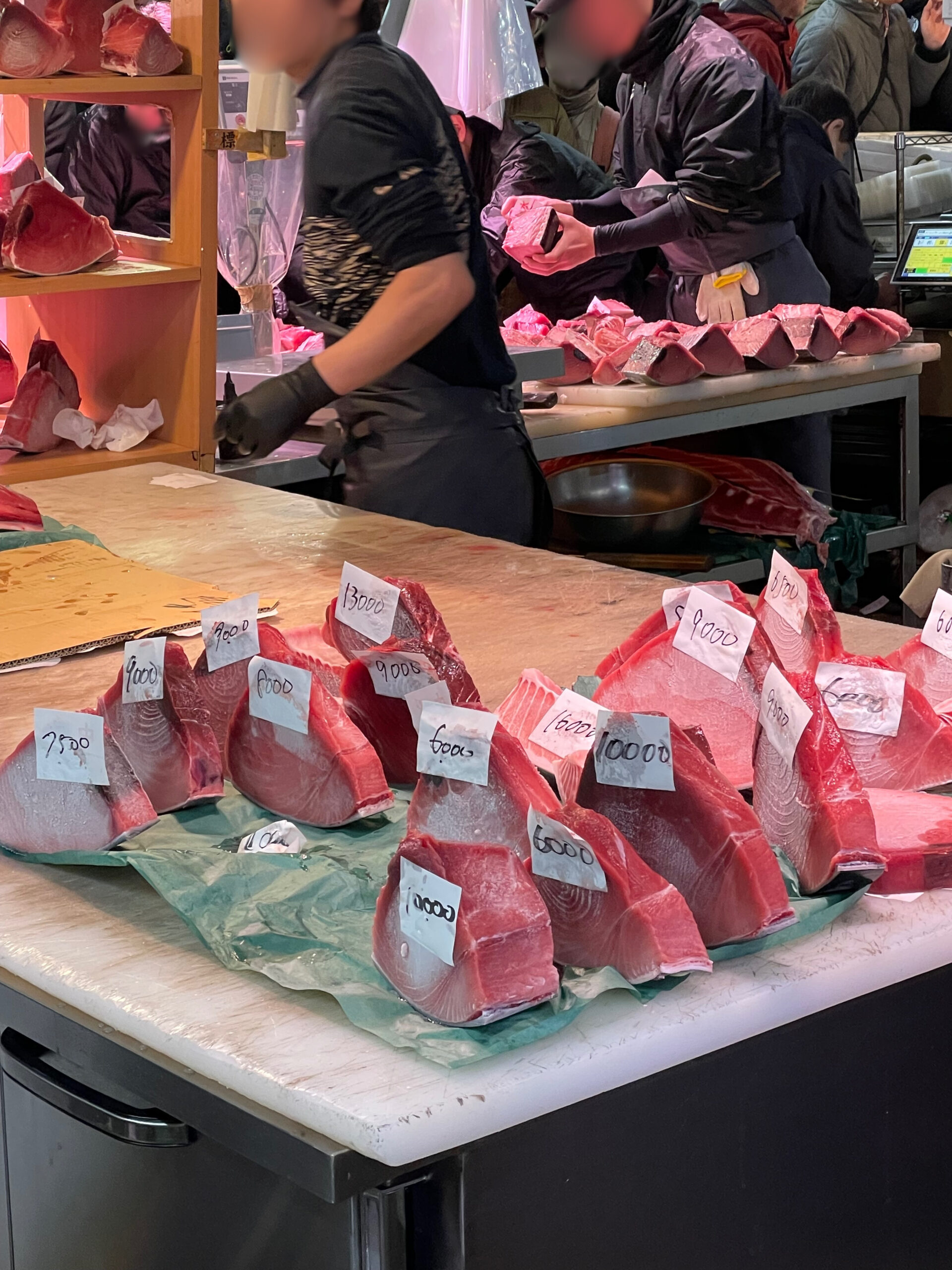 マグロ以外の白身や赤身の冊のお刺身はほとんど見かけなかったです。