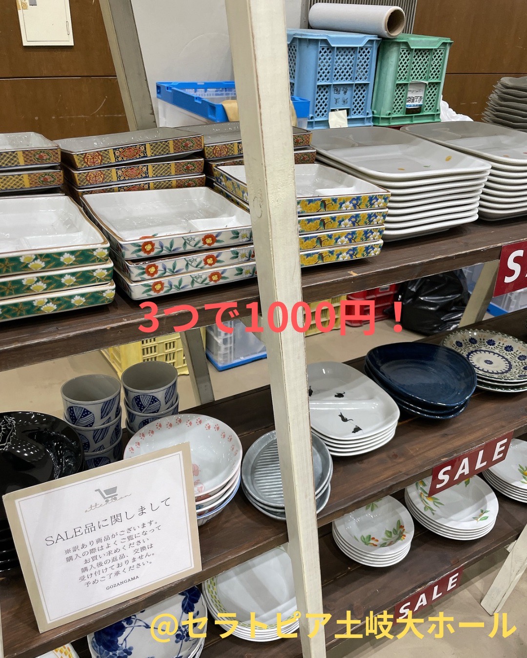 通常品は販売価格より20%off、掘り出し物、B品(正直ほとんどの品がどこがB級なのか分からなかったです)の500円のお皿やコップや通常3000円で販売されているものが→1000円。というものも見つけました。